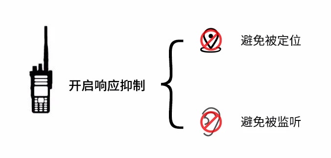 當對講機用戶啟動響應(yīng)抑制功能后,對講機只允許用戶使用語音呼叫、CSBK呼叫和數(shù)據(jù)呼叫(用于短信、工作通知單和遙測等),而所有其他類型的傳輸,包括所有ACK,ARS、GPS等,包括第三方請求的傳輸,都會被阻止,從而避免相關(guān)語音或數(shù)據(jù)被第三方人員接收。