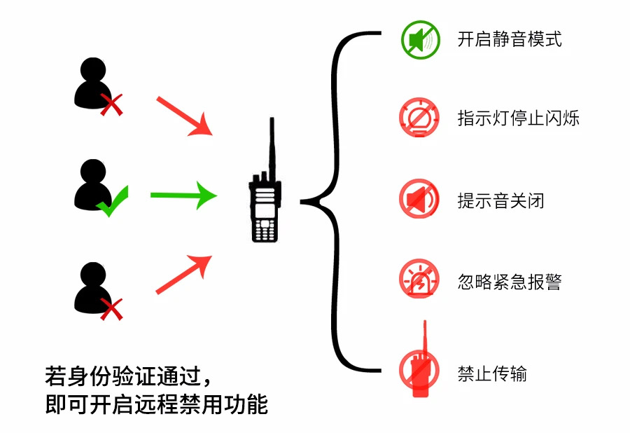 需要身份驗證的對講機遠程禁用功能,允許用戶通過菜單向目標對講機發(fā)起對講機禁用命令。